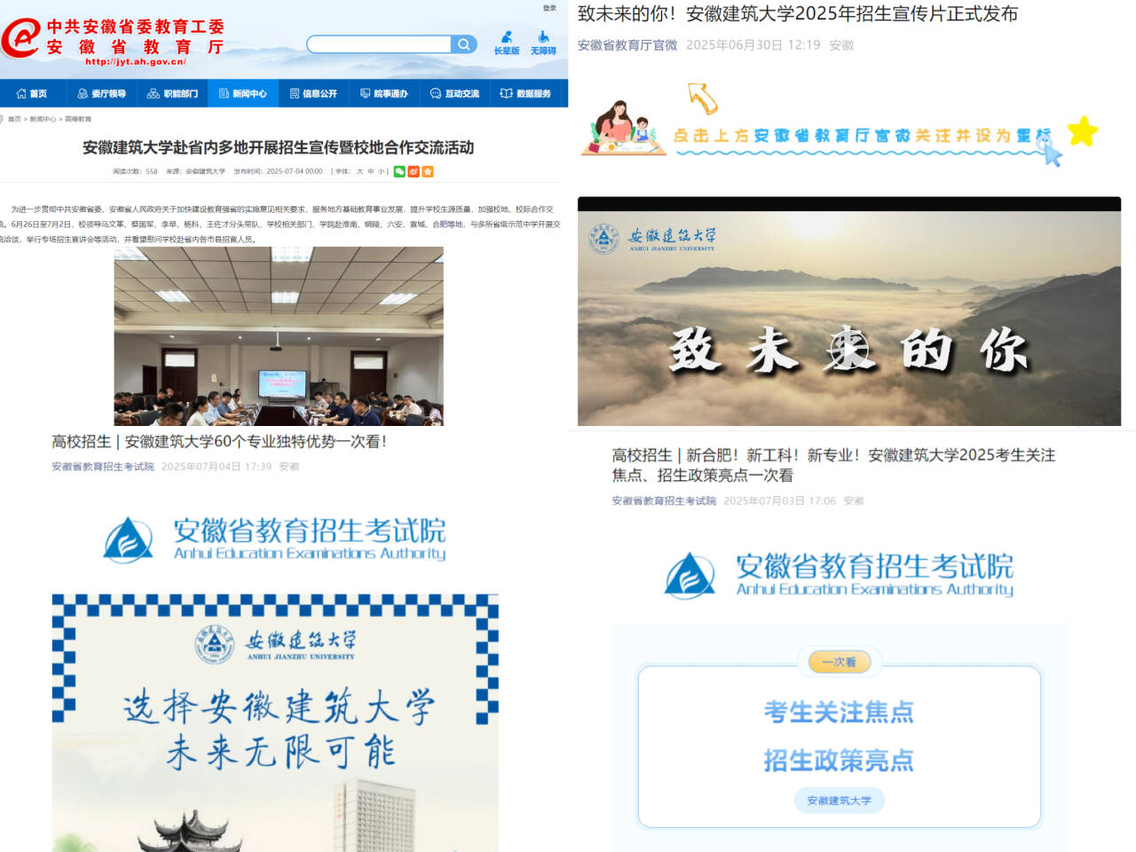 新学年即将开启,正逢学校“深化改革年”与安徽省新高考改革纵深推进相互叠加,也正值“十四五”收官与“十五五”谋篇关键交汇,学校将进一步发挥主观能动性,不断加强与长三角等地区标杆高校、企业和团体的创新合作,前置谋划招生规模、培养层次和生源质量的三重提升,为深入落实教育强国、教育强省建设、一体推进招生—培养—就业发展全链条工作和高水平大学建设持续奠定扎实稳健的生源质量保障。(文:陈晋 图:各部门综合供稿;一审:王琳 二审:张广斌 三审:马巍)